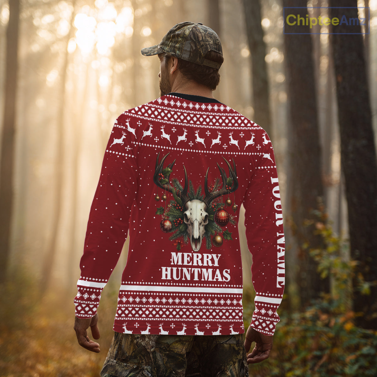 Personalized Ugly Christmas Deer Hunting Shirt Full Print Christmas Pattern, Christmas Gifts NBT284