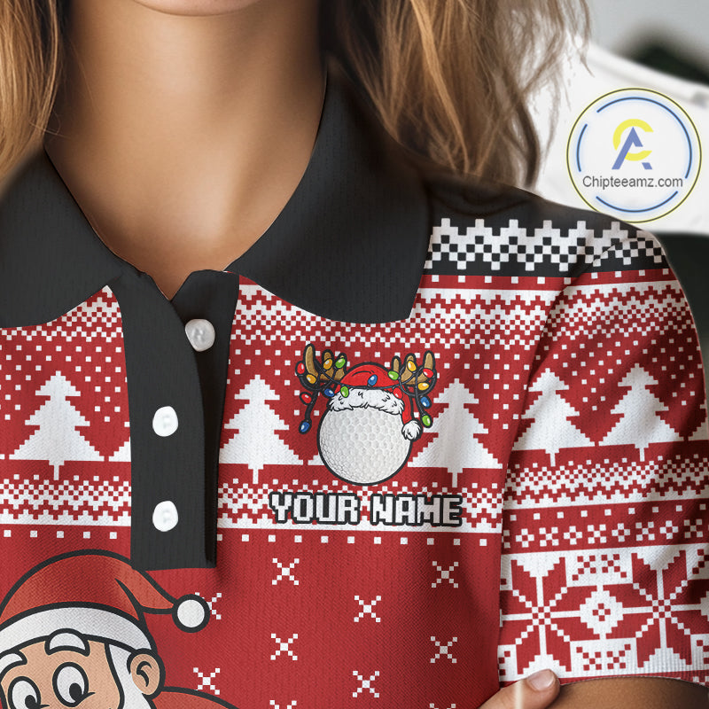 Funny Santa Golf Polo shirts For women Red ugly Christmas pattern Custom ladies Christmas golf shirts NQS11000