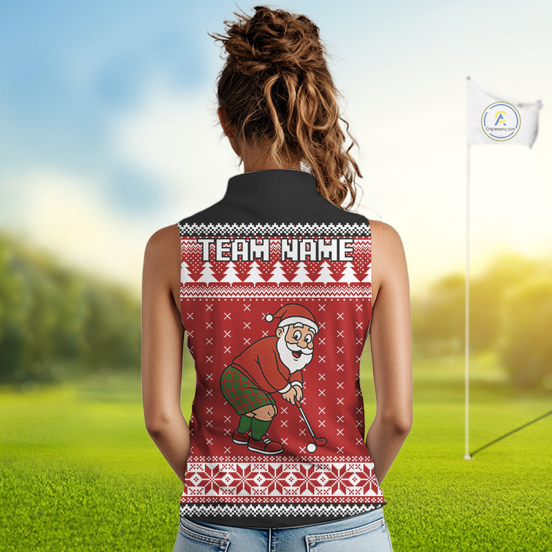 Funny Santa Sleeveless Golf Polo shirt Red ugly Christmas pattern Custom ladies Christmas golf shirts NQS11000