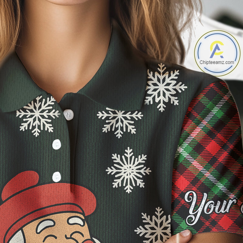 Funny Santa Golf Christmas plaid pattern polo golf shirts for women custom team ladies golf outfit NQS11077
