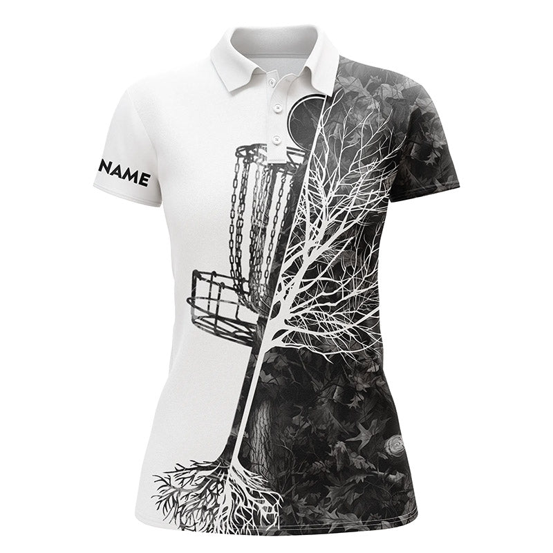 Womens disc golf polo shirt custom multi color camo disc golf basket, personalized disc golf shirts NQS4632