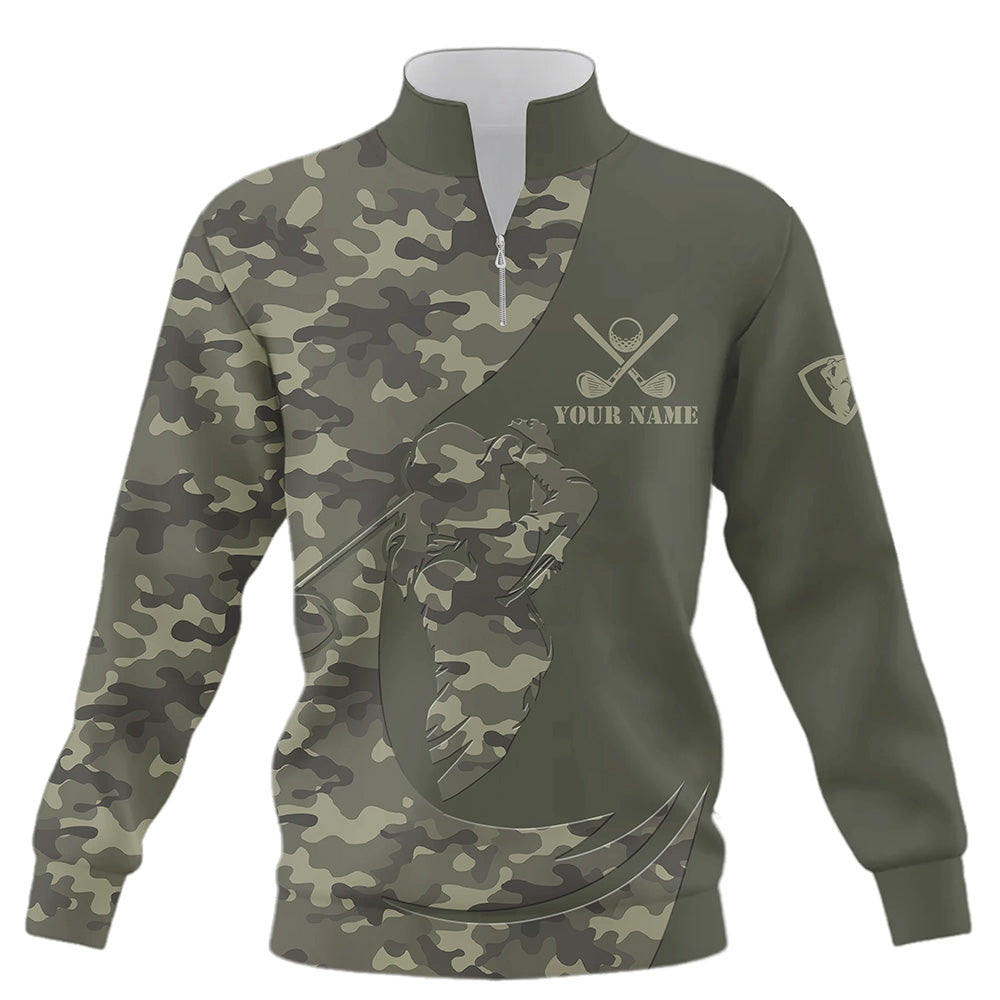 Green Camo Quarter zip golf sweatshirt Custom golf sweater for men women, personalized golfer gifts NQS8537