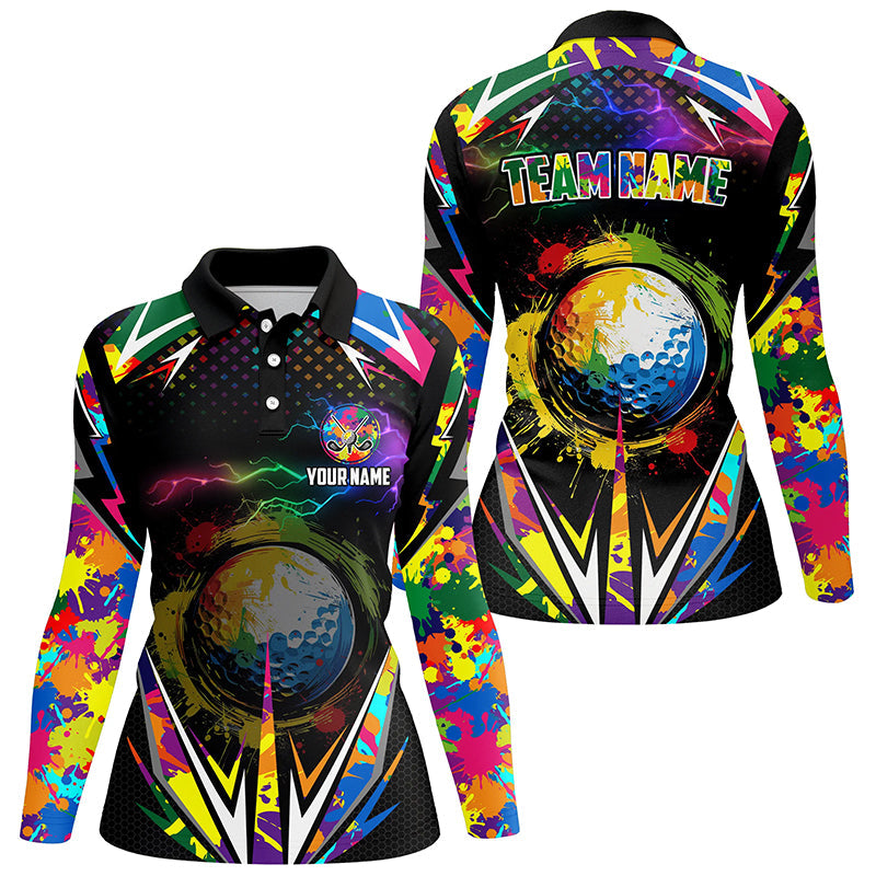 Black Womens golf polo shirts custom colorful lightning team golf jerseys, golf attire for women NQS7906