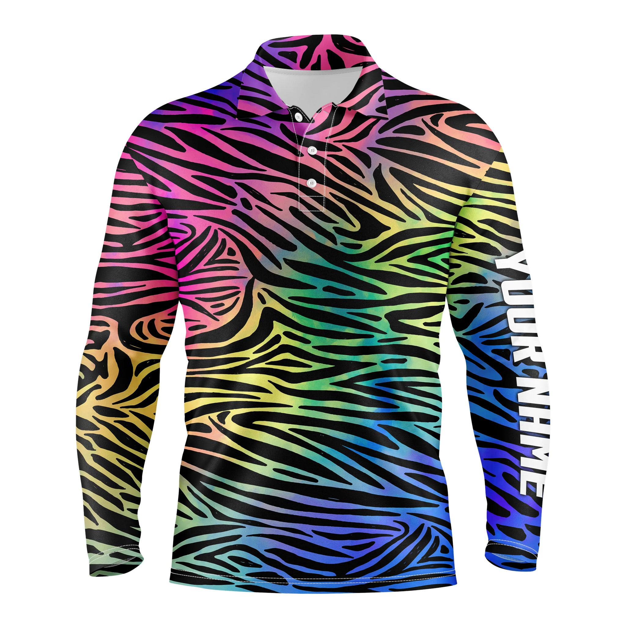 Colorful neon Rainbow Zebra skin mens golf polo shirts, team golf shirt gift for golf lovers NQS4988