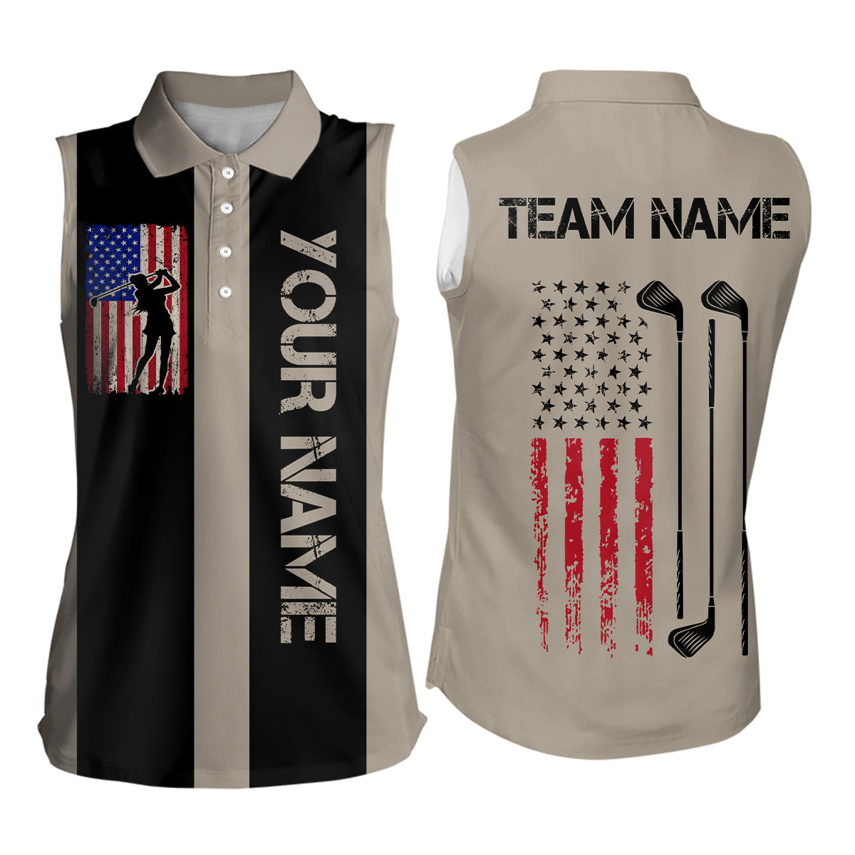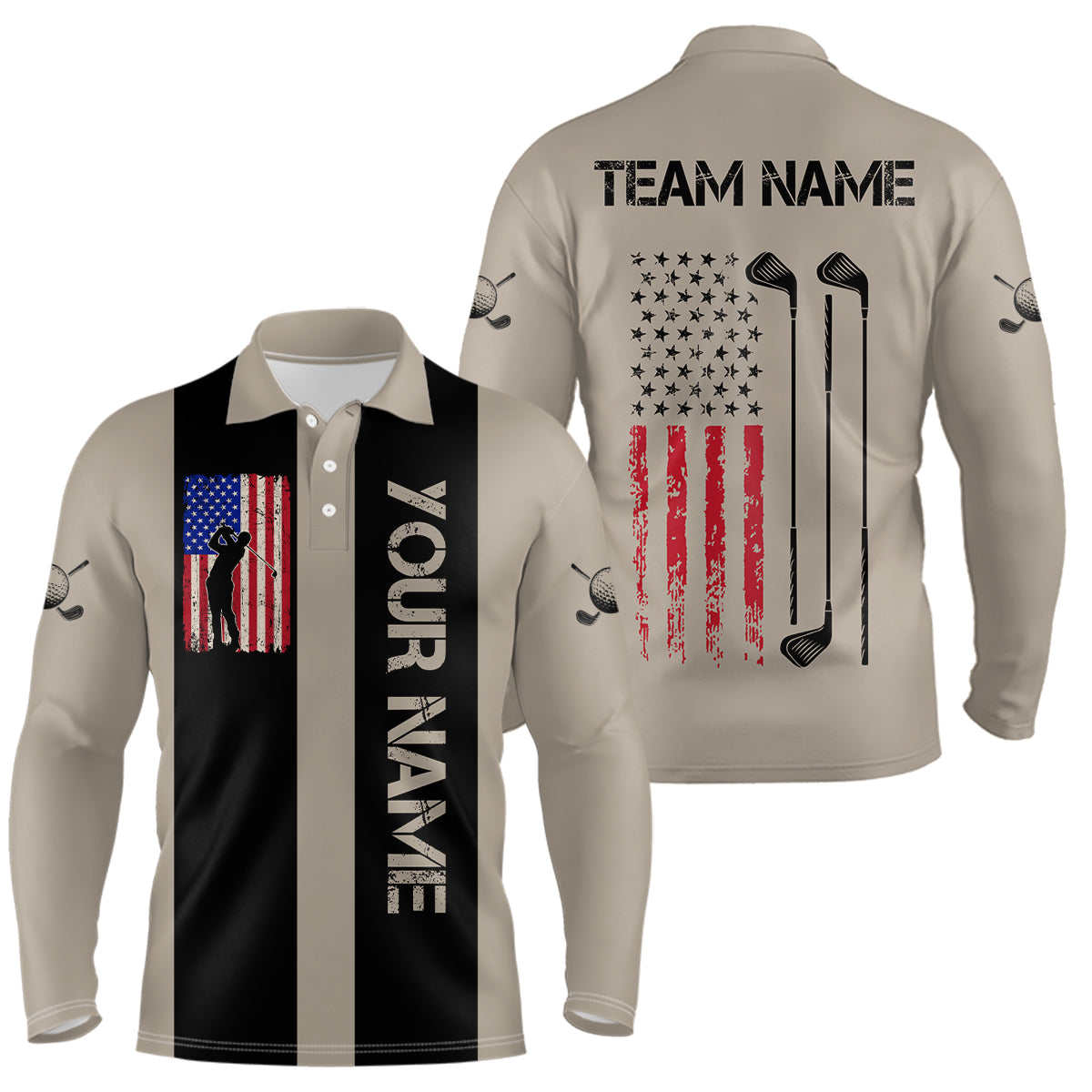 Custom Patriotic Golf Polo Shirt for Men Women Team Golf Shirts Brown and Black MMG47