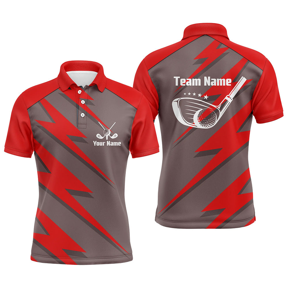 Mens golf polo shirt red lightning custom name and team name golf shirt, golfing gifts NQS6089