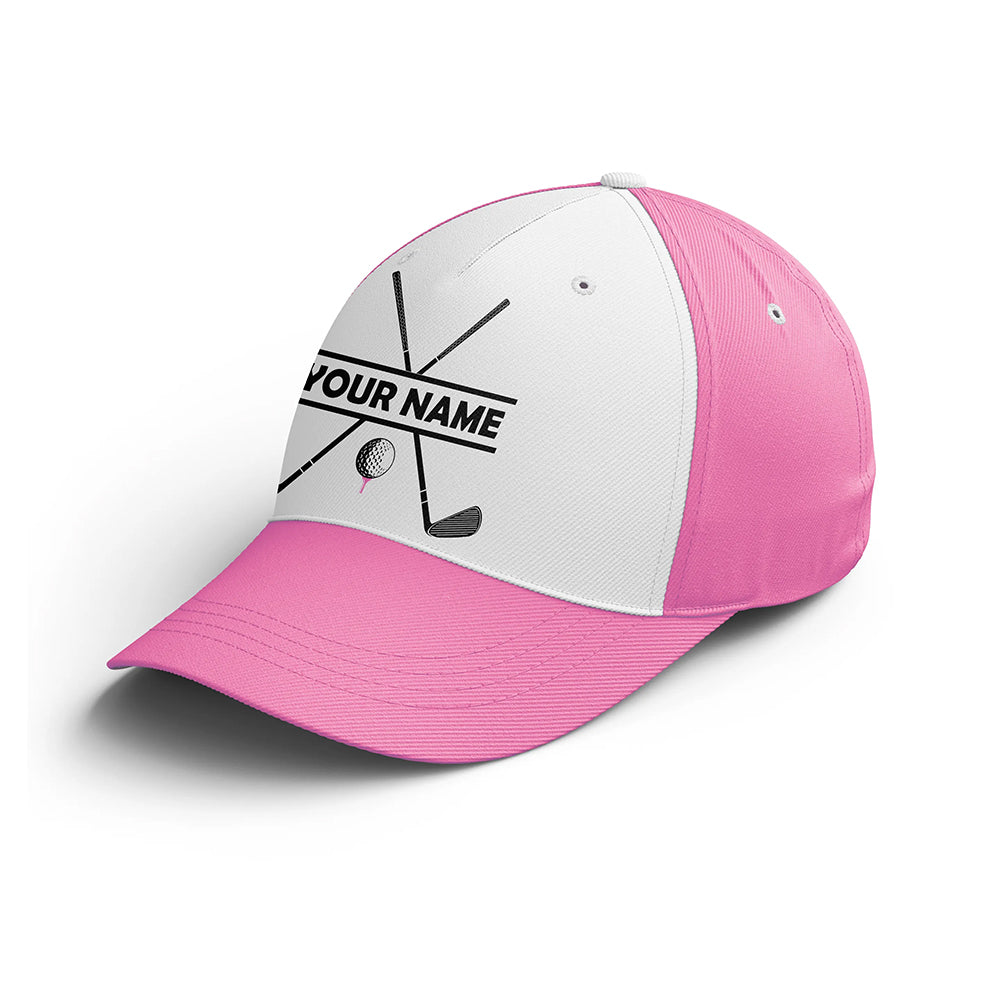 Women Golfer hat custom name pink and white golf hats Unisex Baseball women golf hats, golfing gift NQS6606