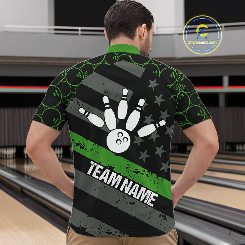 Black American flag Men bowling shirts Custom bowling camo Team Jerseys, gift for Bowlers | Green NQS10896