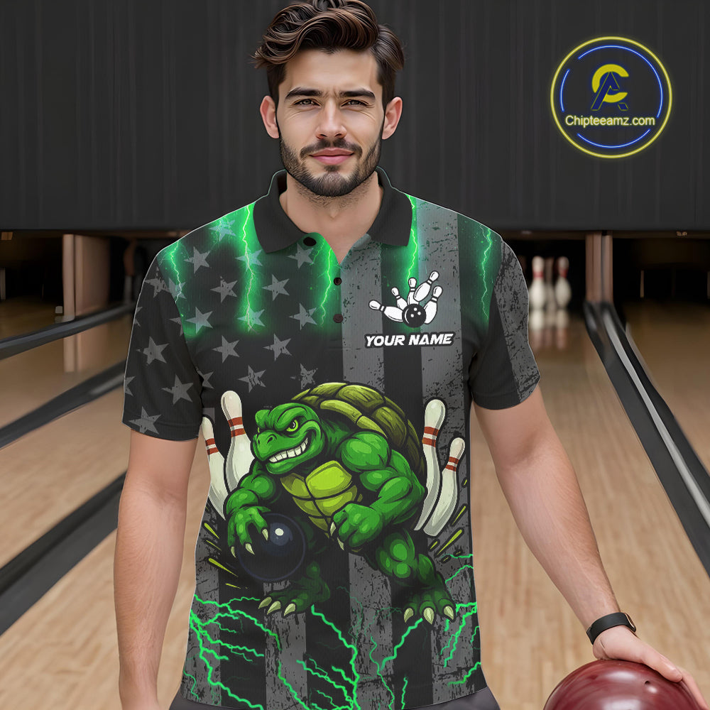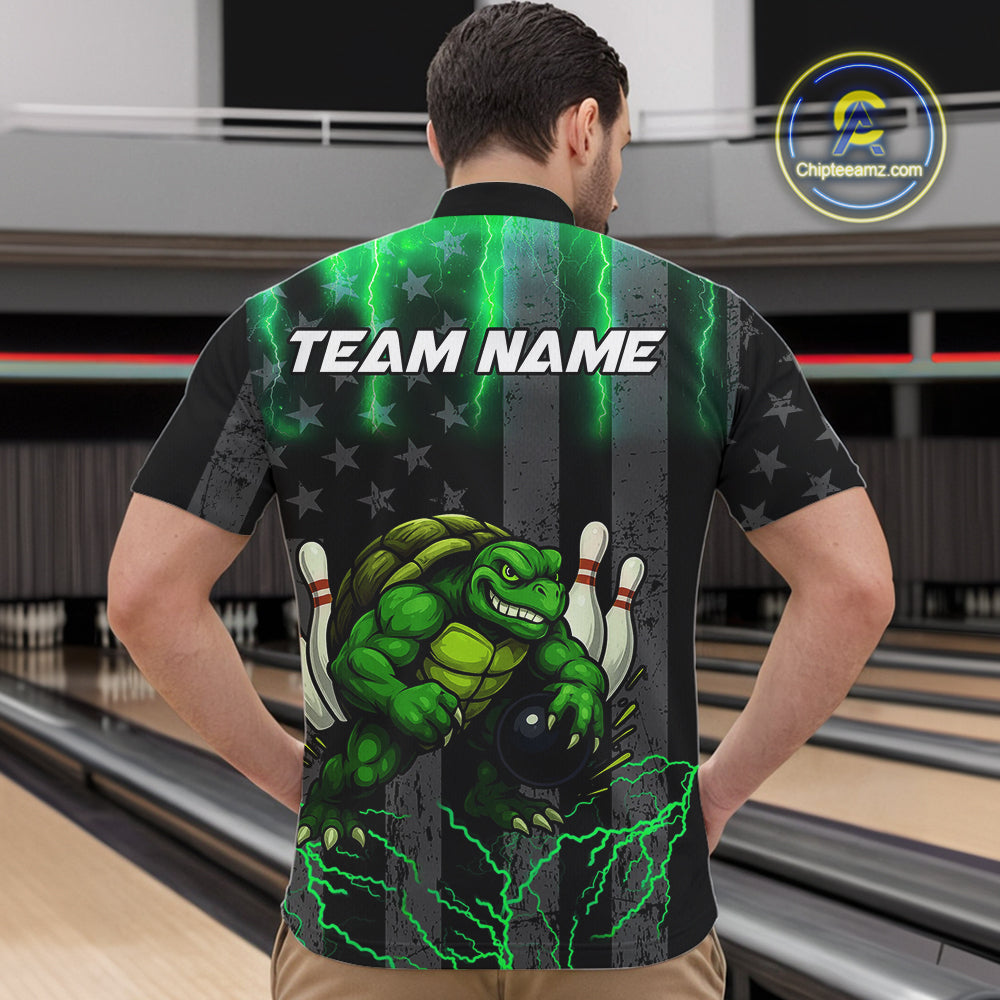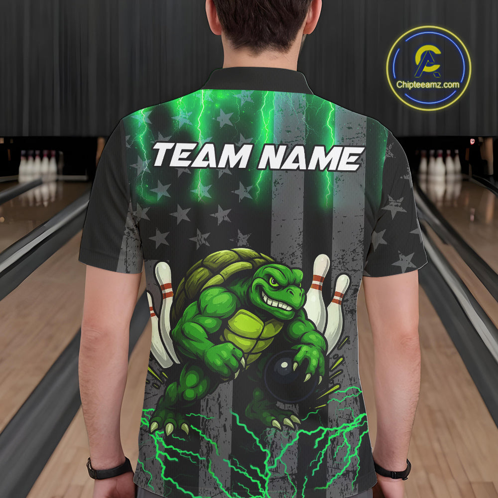 Black American flag Men's bowling shirts Custom Green lightning thunder Turtle Bowling Team Jerseys NQS10623