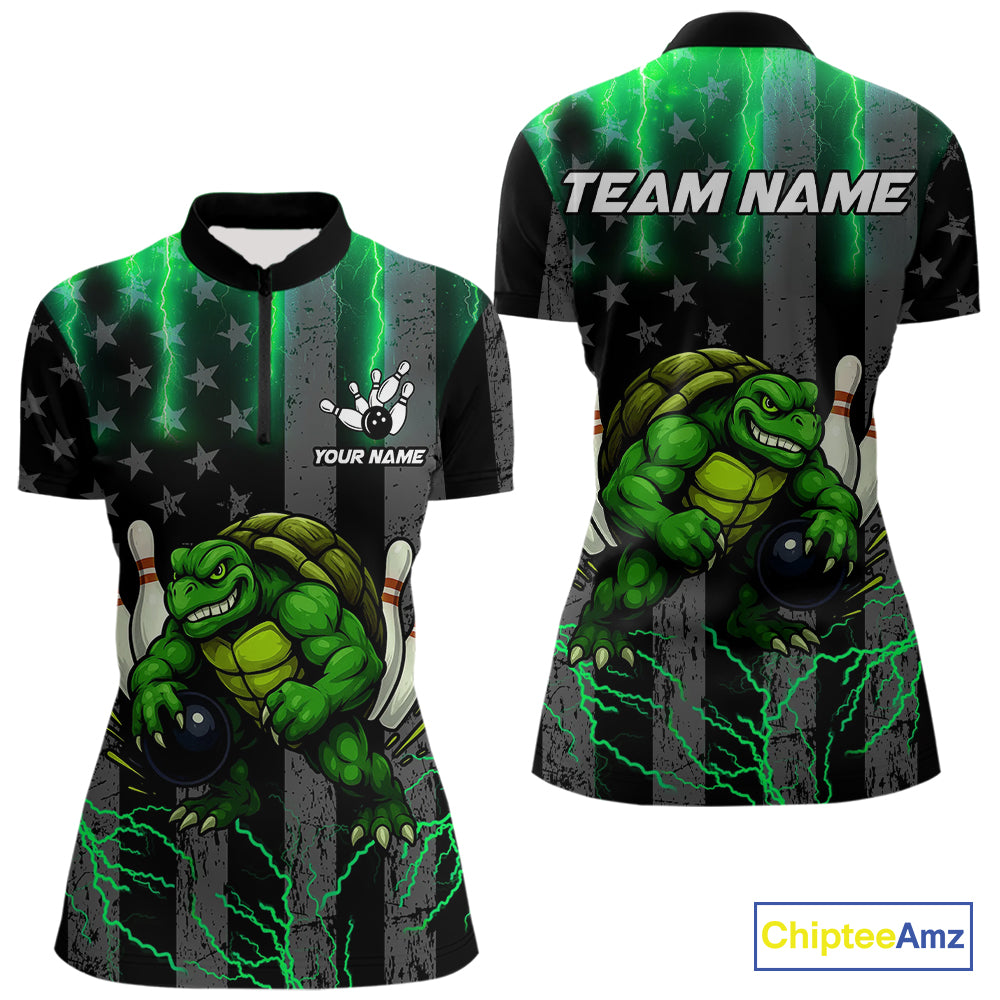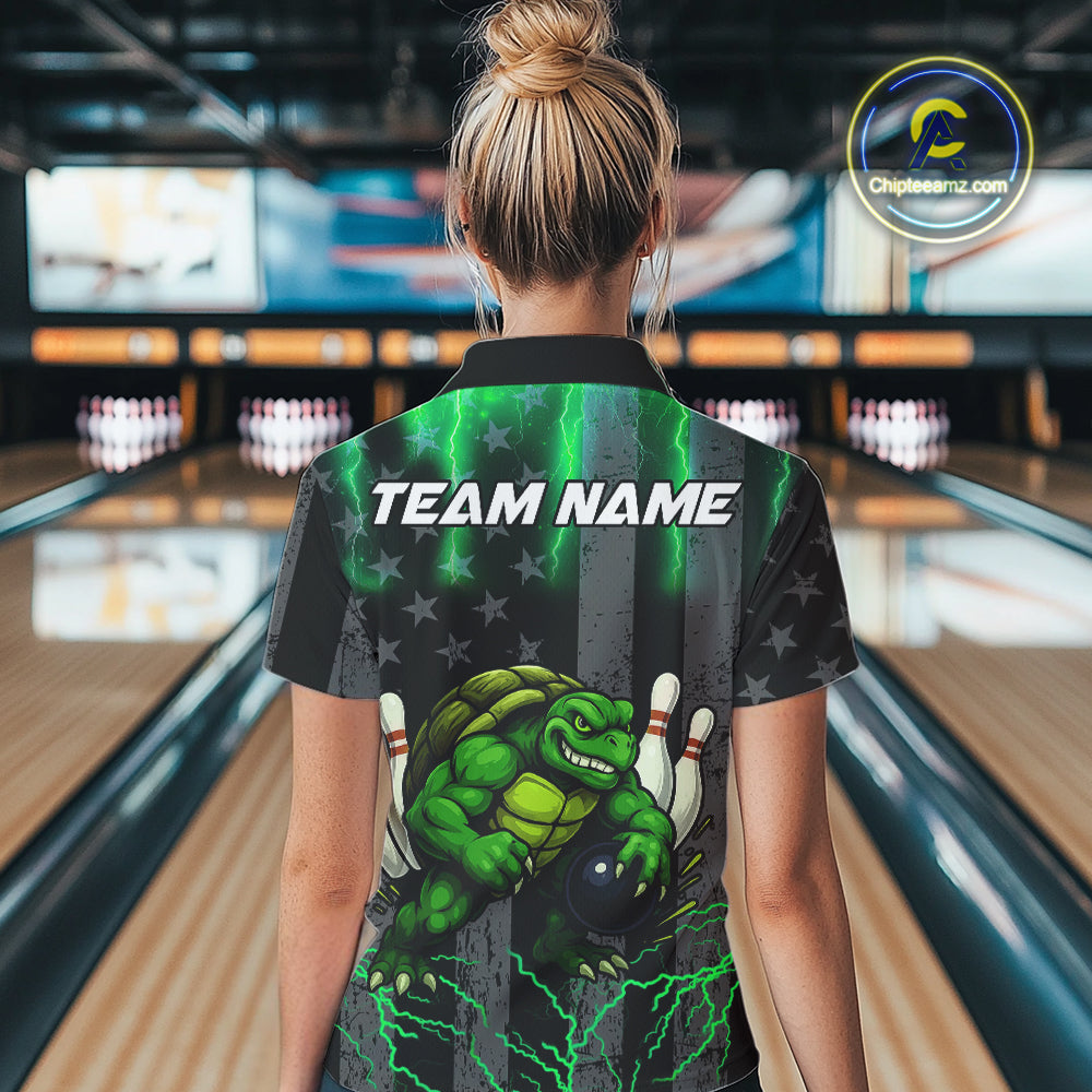 Black American flag Women's bowling shirts Custom Green lightning thunder Turtle Bowling Team Jerseys NQS10623