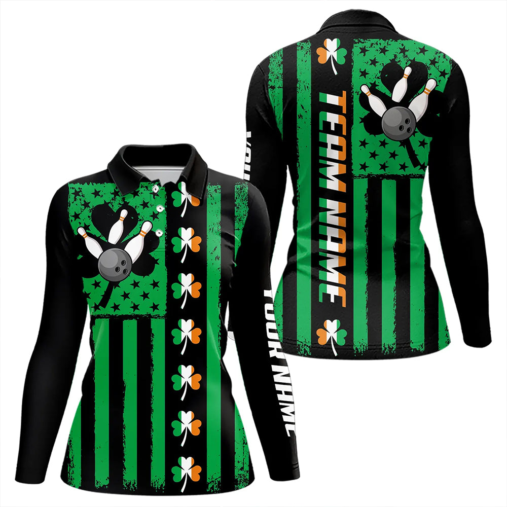 Black and Green American flag Irish Women bowling shirts Custom St Patrick Day Bowling Team Jersey NQS9612