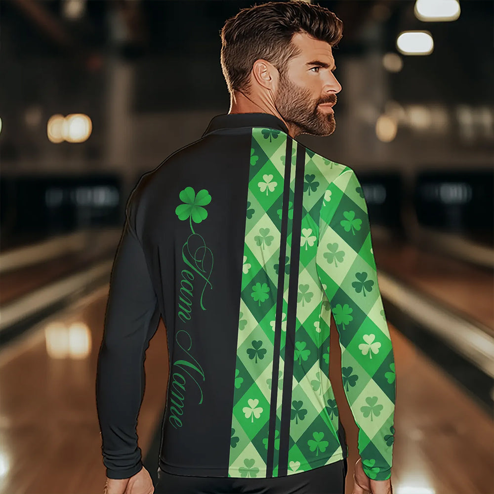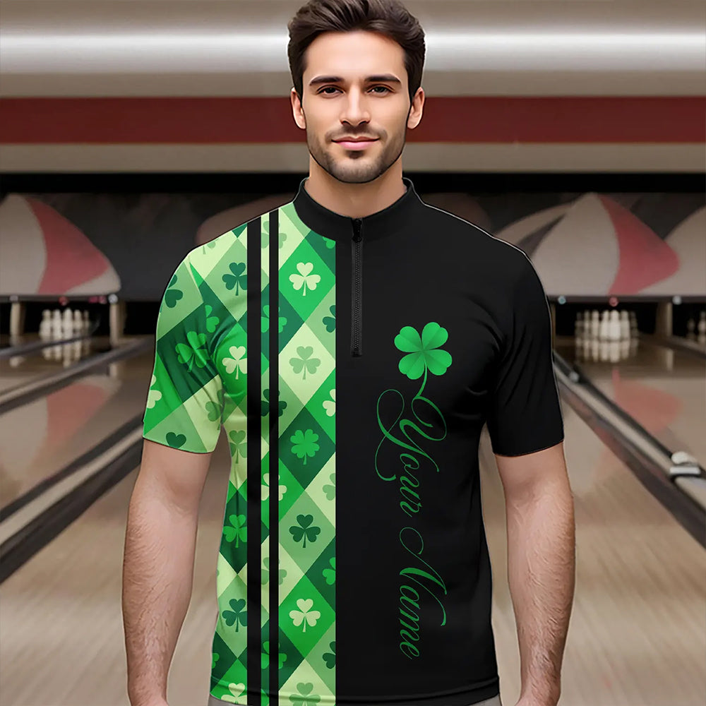 Black and Green Argyle Clover pattern Men Bowling Shirts Custom St patrick Day Bowling Team Jersey NQS9639