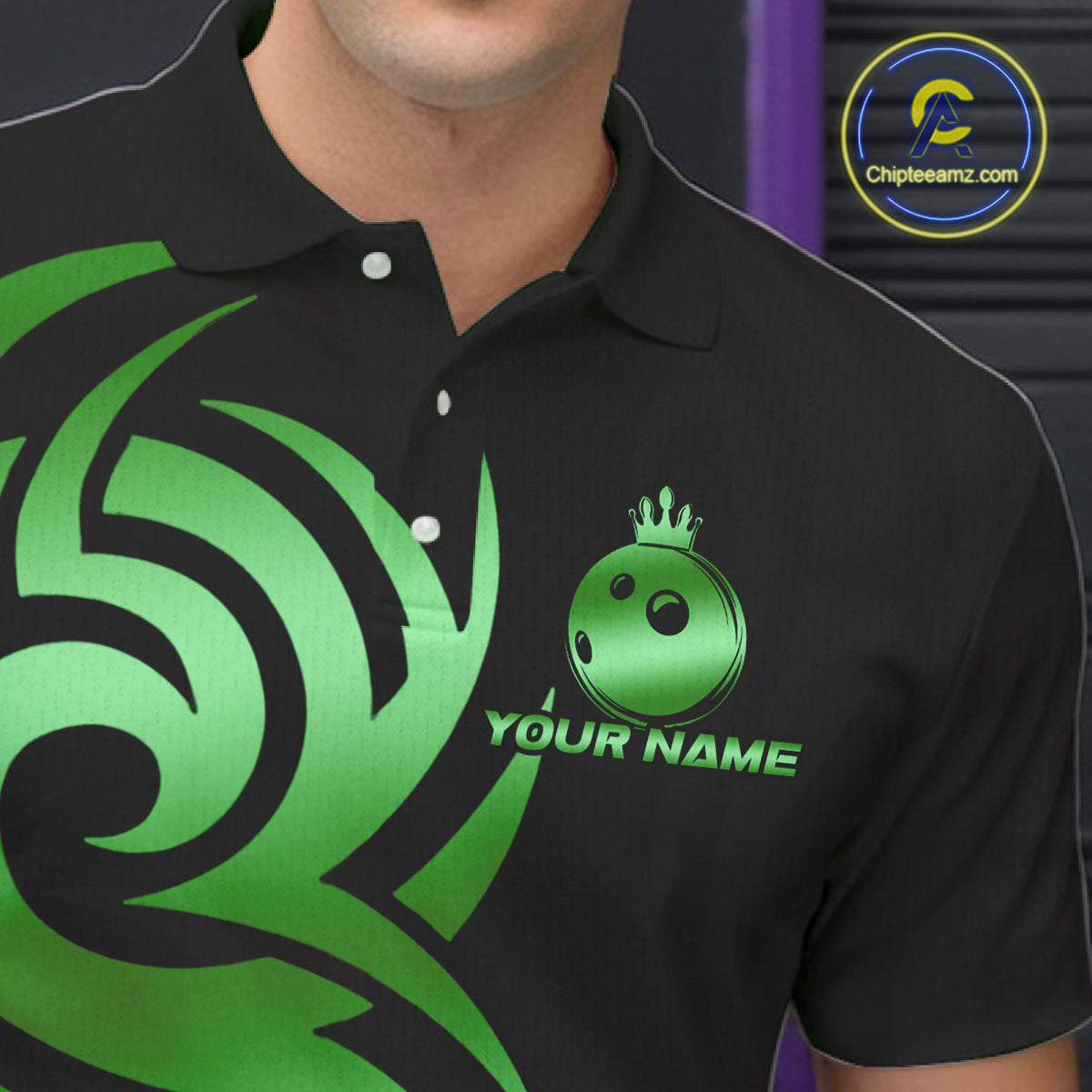 Black and Green crown Bowling ball Polo, Quarter Zip Shirts for Men Custom Bowling Team jerseys NQS10731