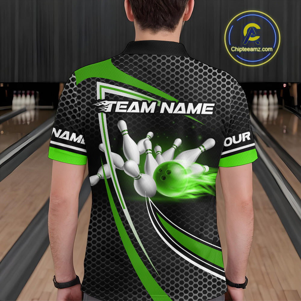 Black and Green Flame Bowling Shirts For Men Custom Team Bowling Jersey, Gift For Bowlers NQS10858