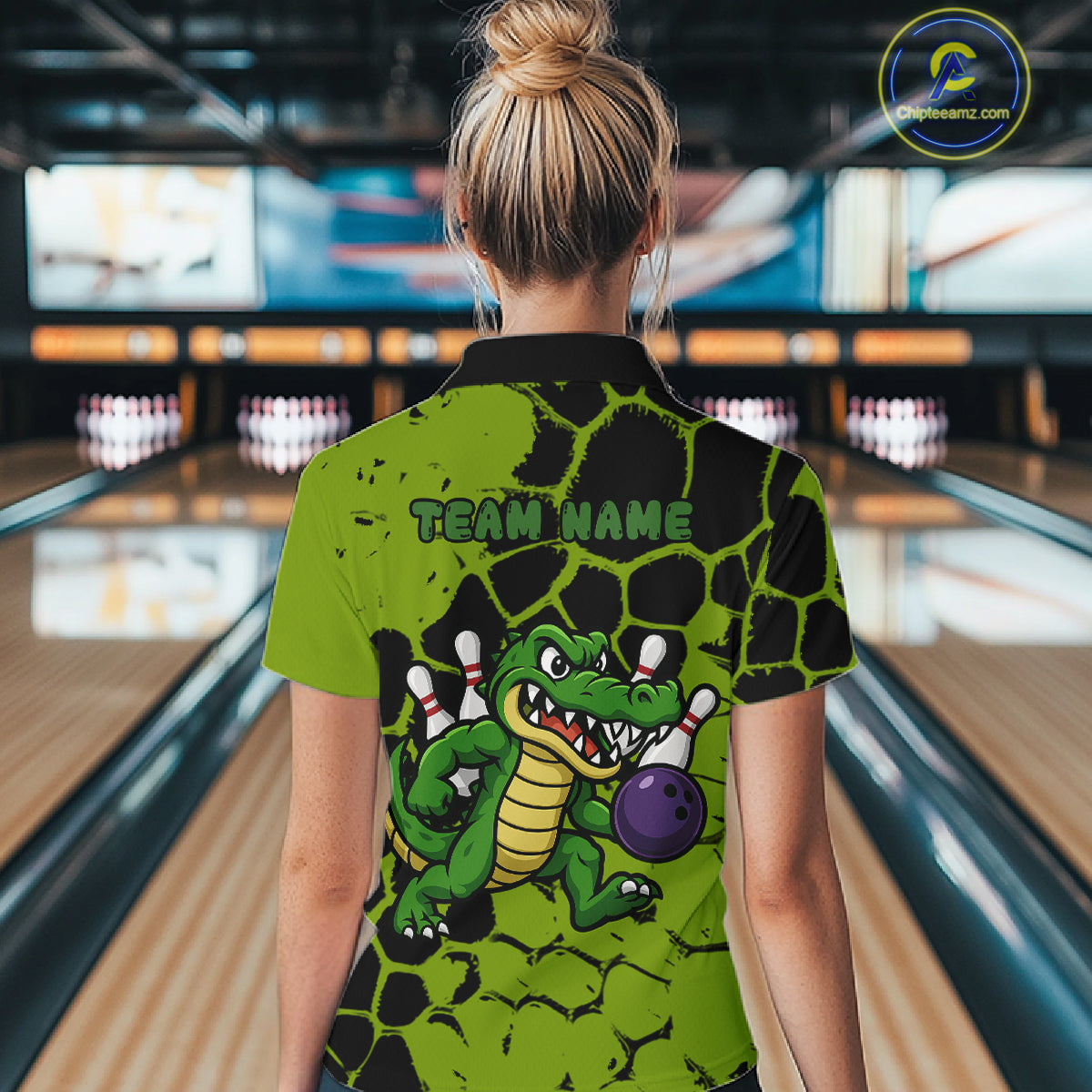Black and Green Funny Alligator Bowling shirts for Women, Alligator Bowling Team Jersey NQS10739