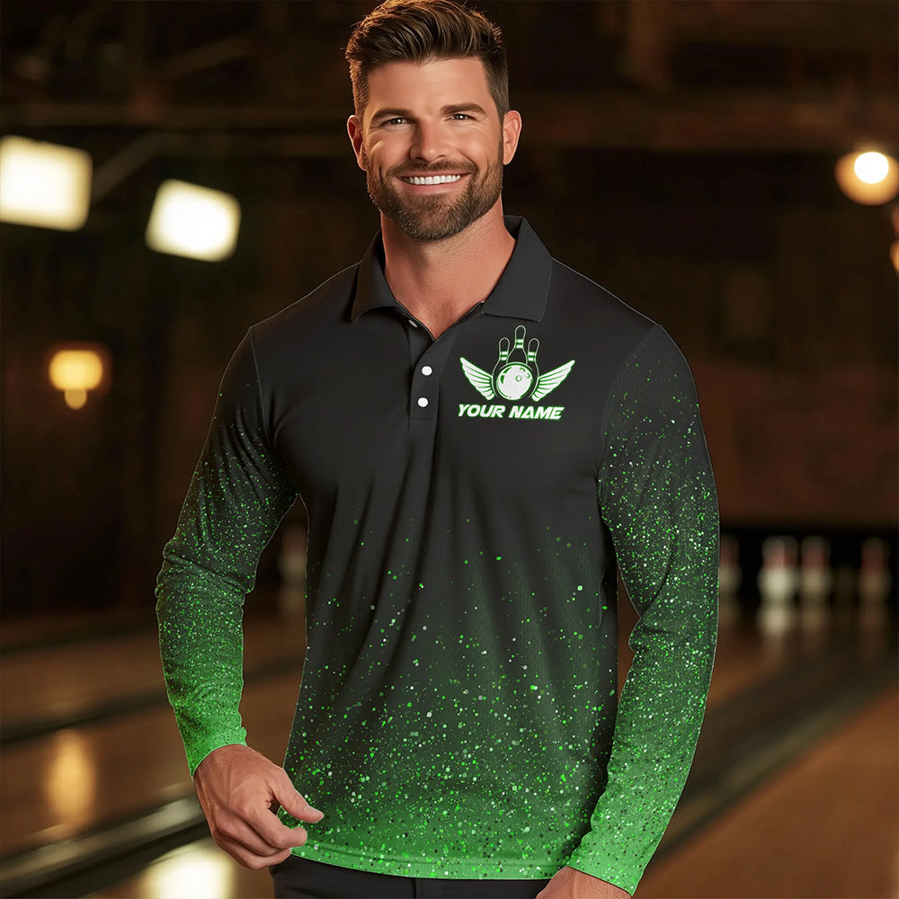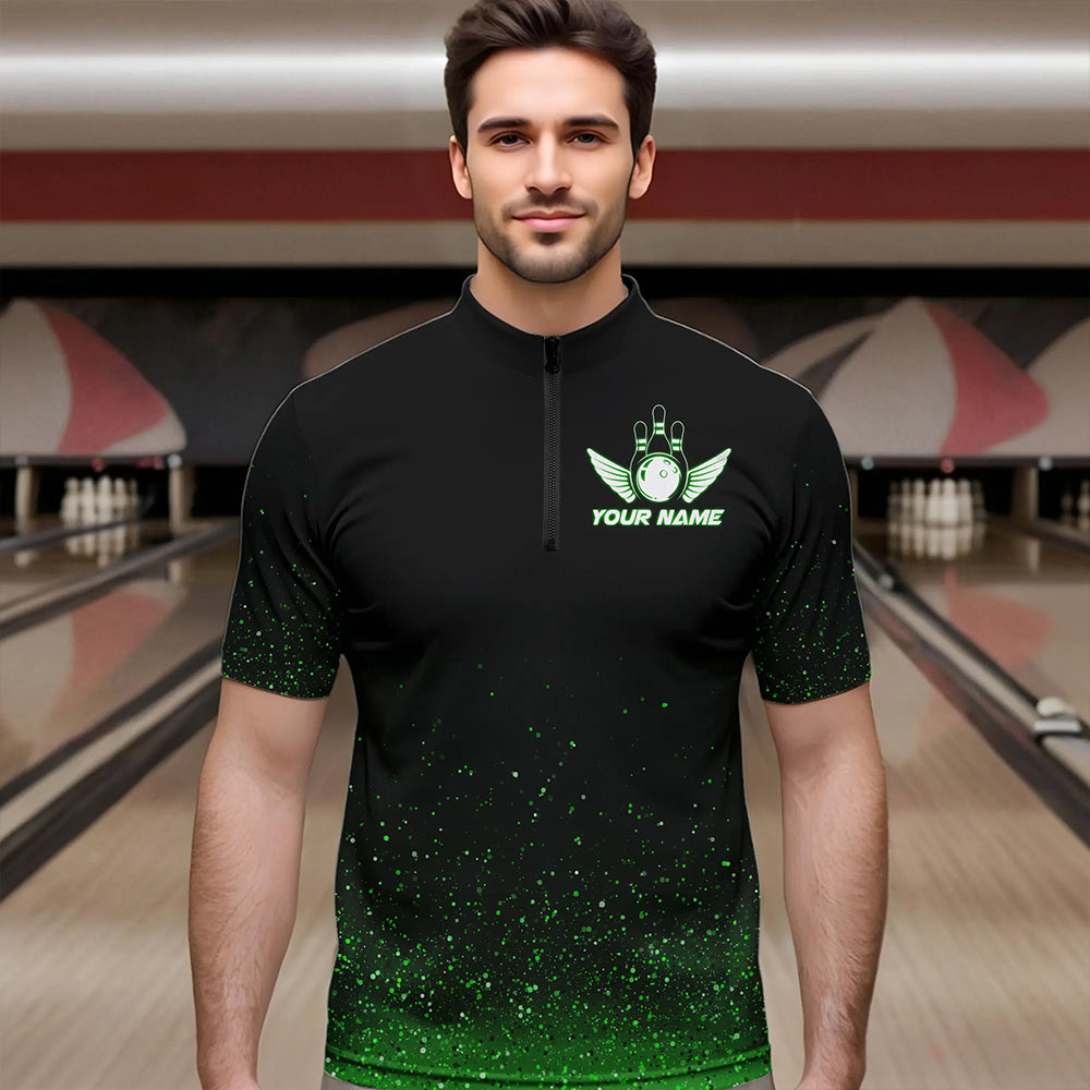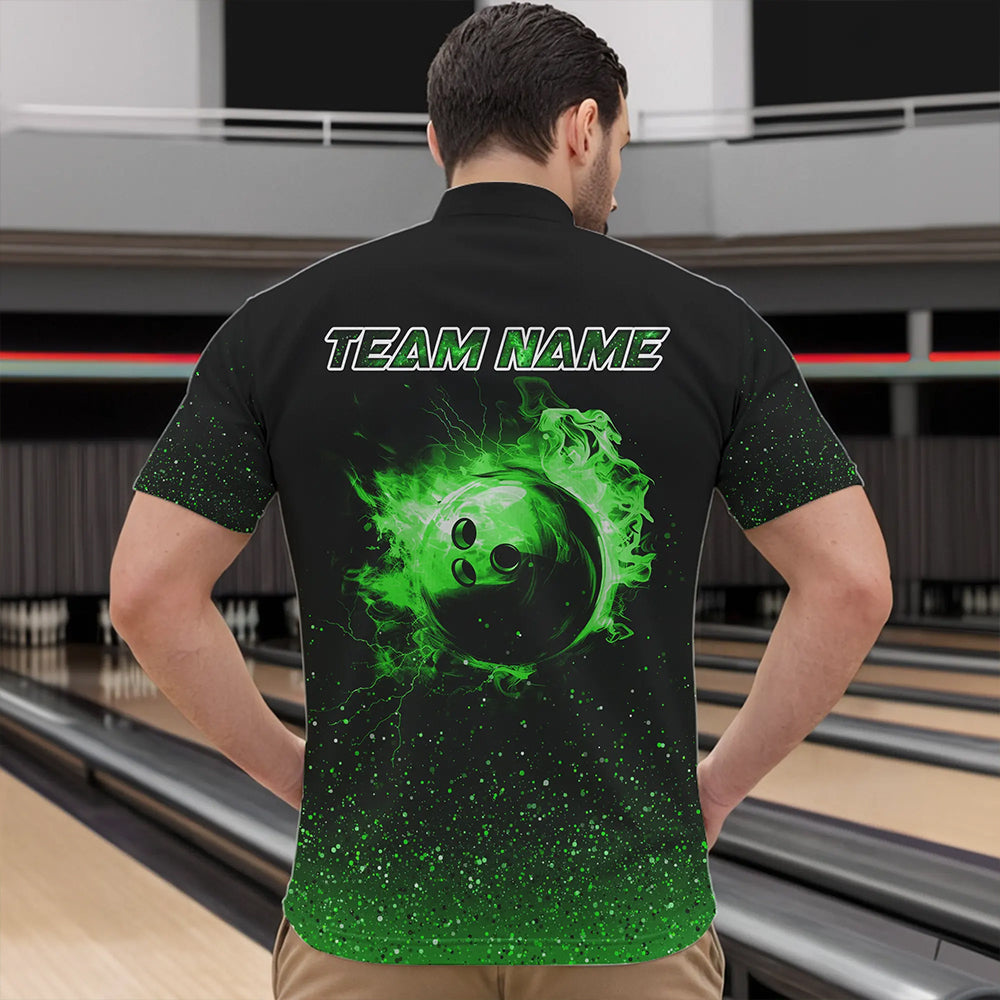 Black And Green Glitter Lucky Custom Bowling Team Shirt For Men, St Patrick Day Uniform Bowler Outfits NQS9364