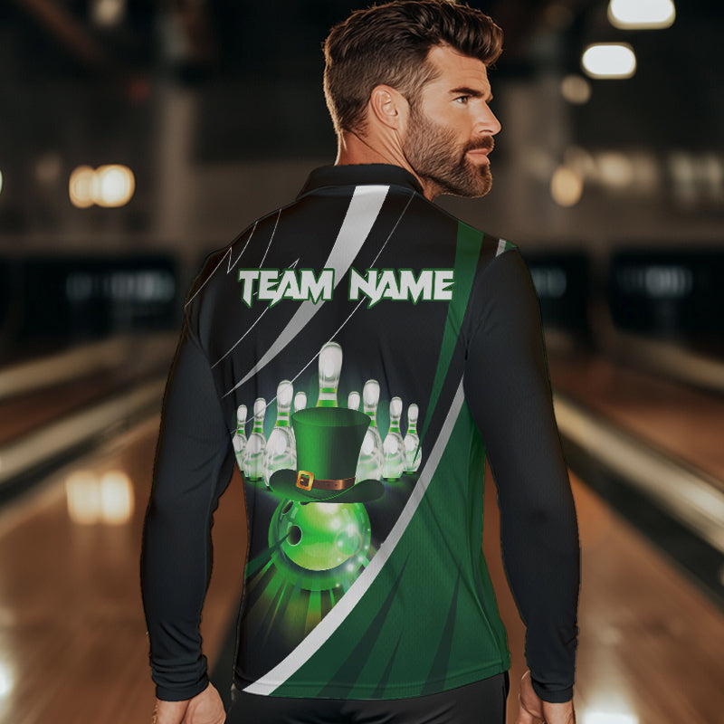 Black and Green St Patrick Day bowling Polo, Quarter Zip shirts for men Custom Team bowling jerseys NQS9403