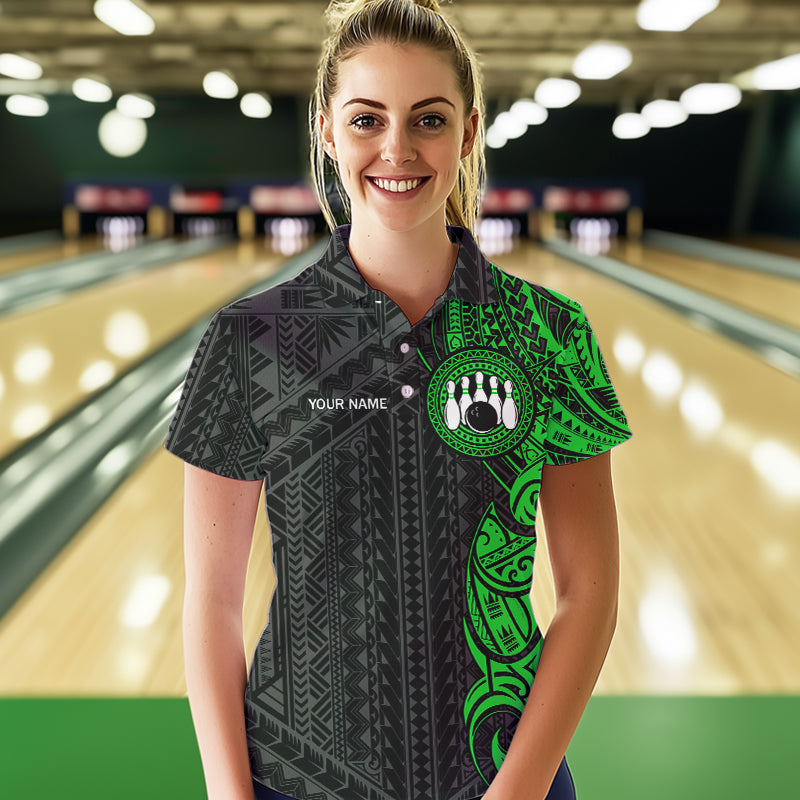 Black and Green Tribal pattern Womens Bowling Shirts Custom Bowling outfit ladies Team bowling jerseys NQS9739