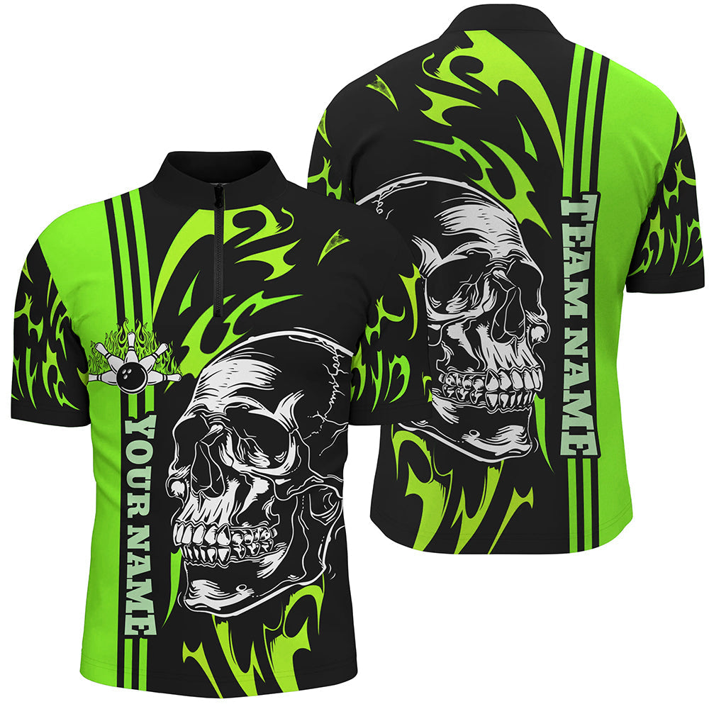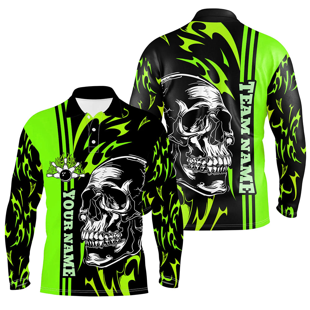 Bowling Shirts For Men Custom Black and Green flame skull Bowling ball and pins Team league Jerseys NQS8666