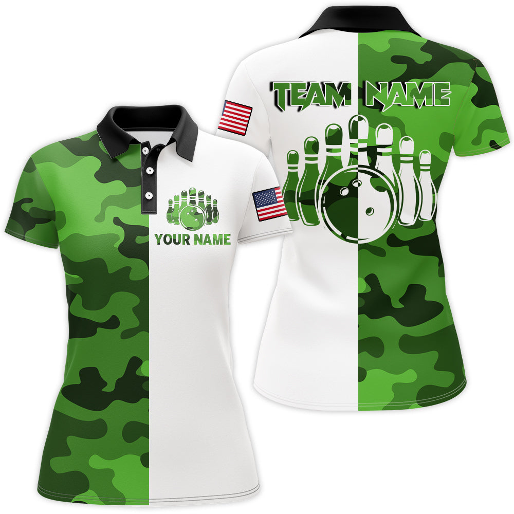 Custom Bowling Jersey Men And Women Green Camo Bowling Shirts Uniform Polo BDT599