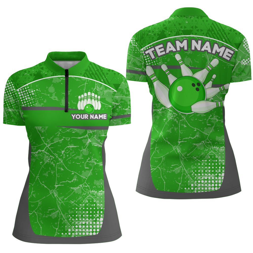 Custom Green Bowling Shirt For Men & Women Camo Bowling Team Jersey 1/4 Zip Bowling Shirts BDT582