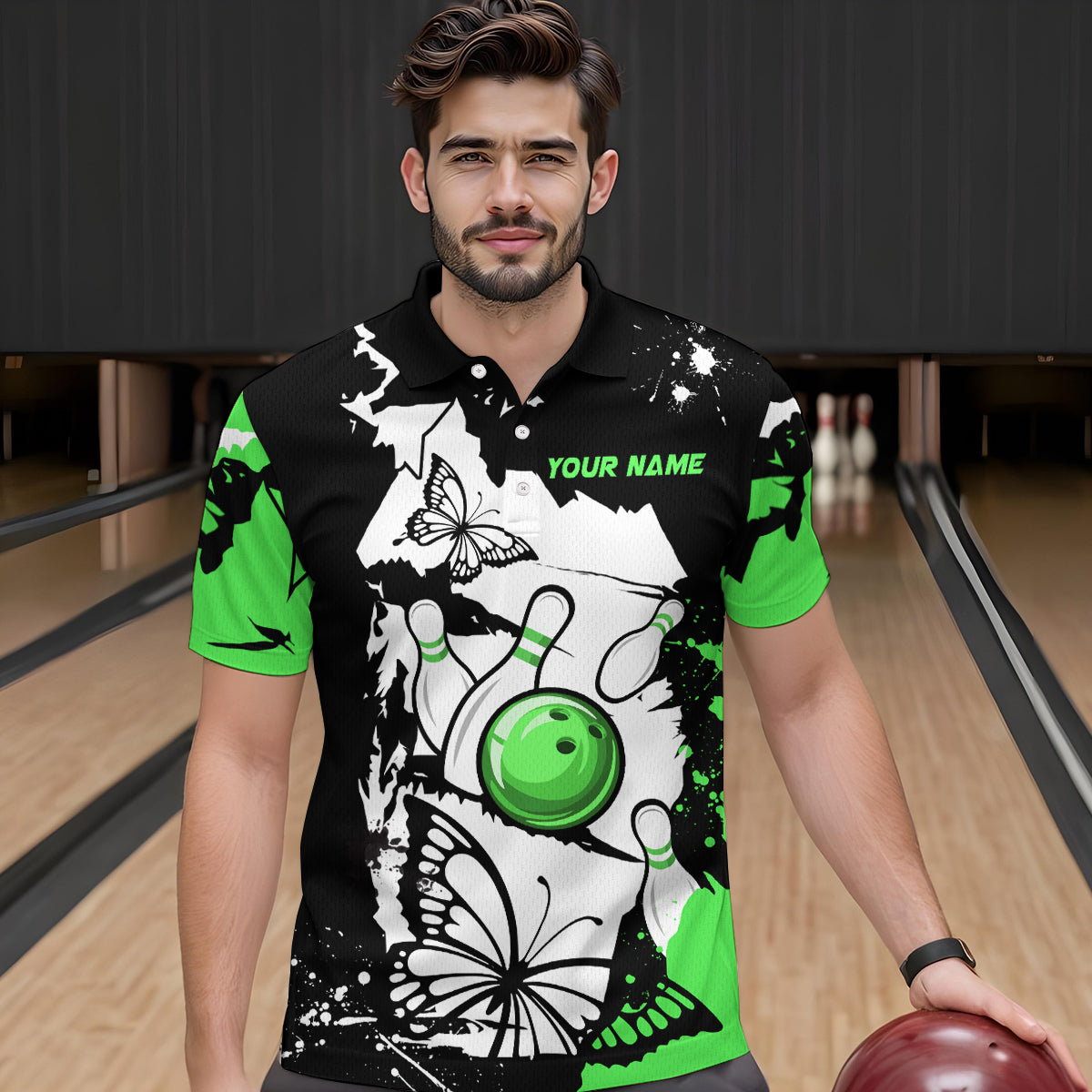 Custom Green Butterflies Bowling Shirt for Men Women Team Bowling Polo&Quater Zip MBL76