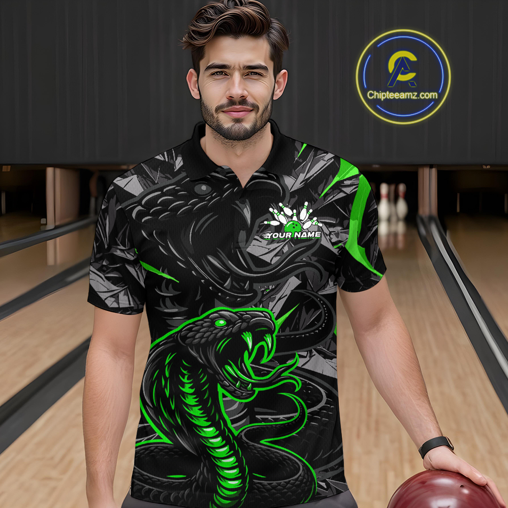 Custom Green Cobra Snake Bowling Jersey for Men Bowling Team Shirts Bowling Uniform Polo & 1/4 Zip HNT137