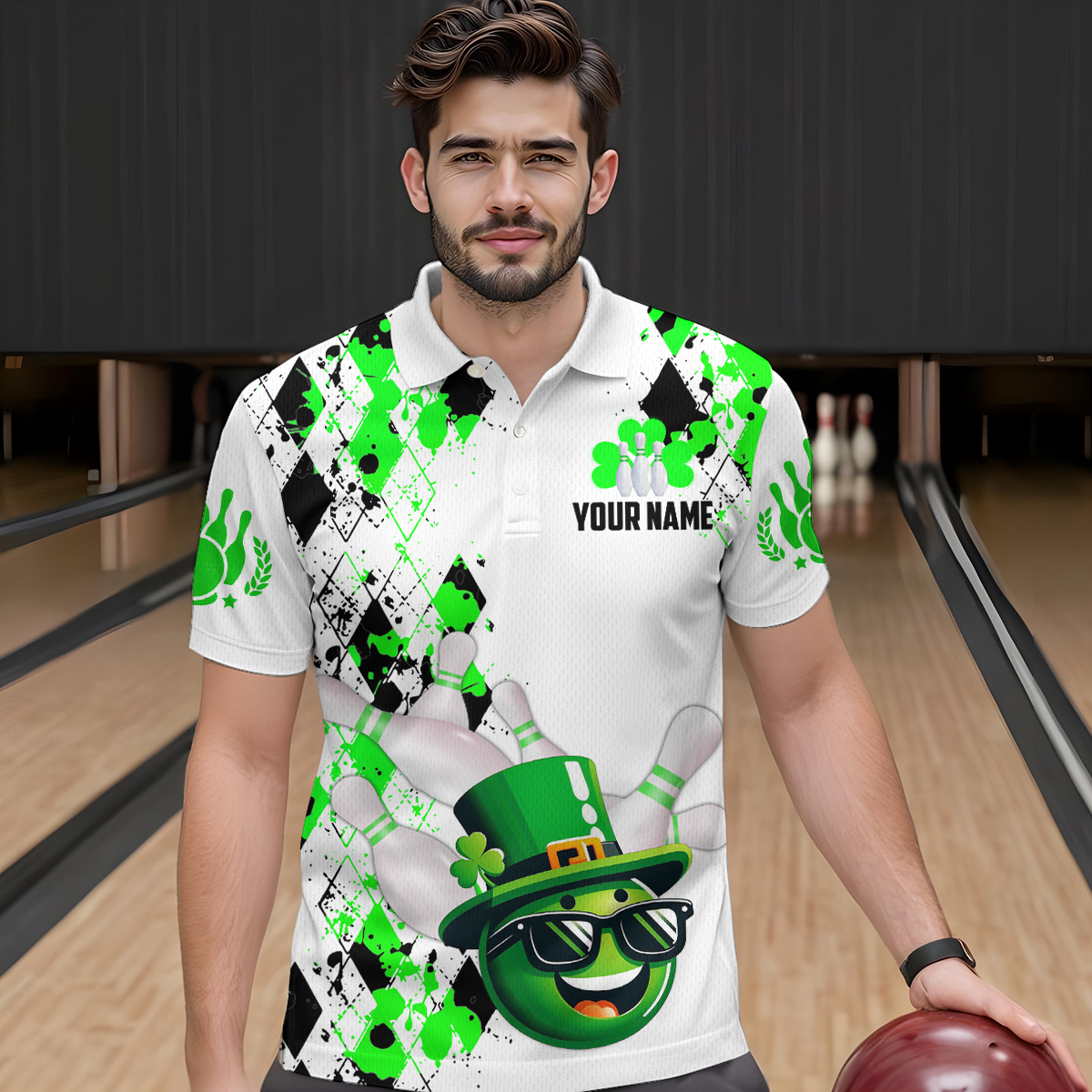 Custom Green Funny Bowling Shirt St Patrick Day Bowling Polo Team Jersey Unisex QZT620