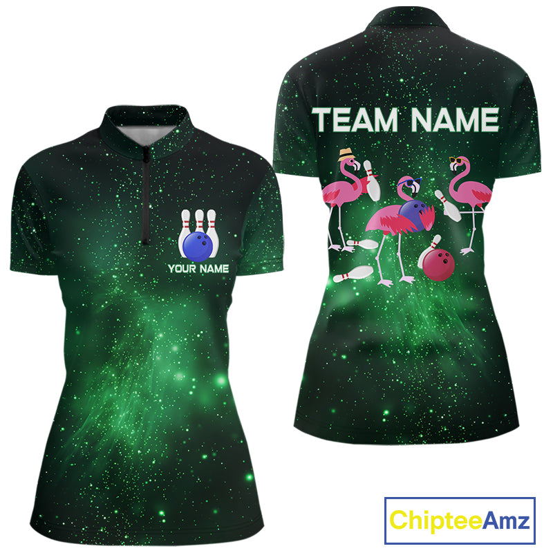 Funny Flamingo Team bowling shirts for Women custom Green Galaxy pattern bowling jerseys for bowlers NQS10884