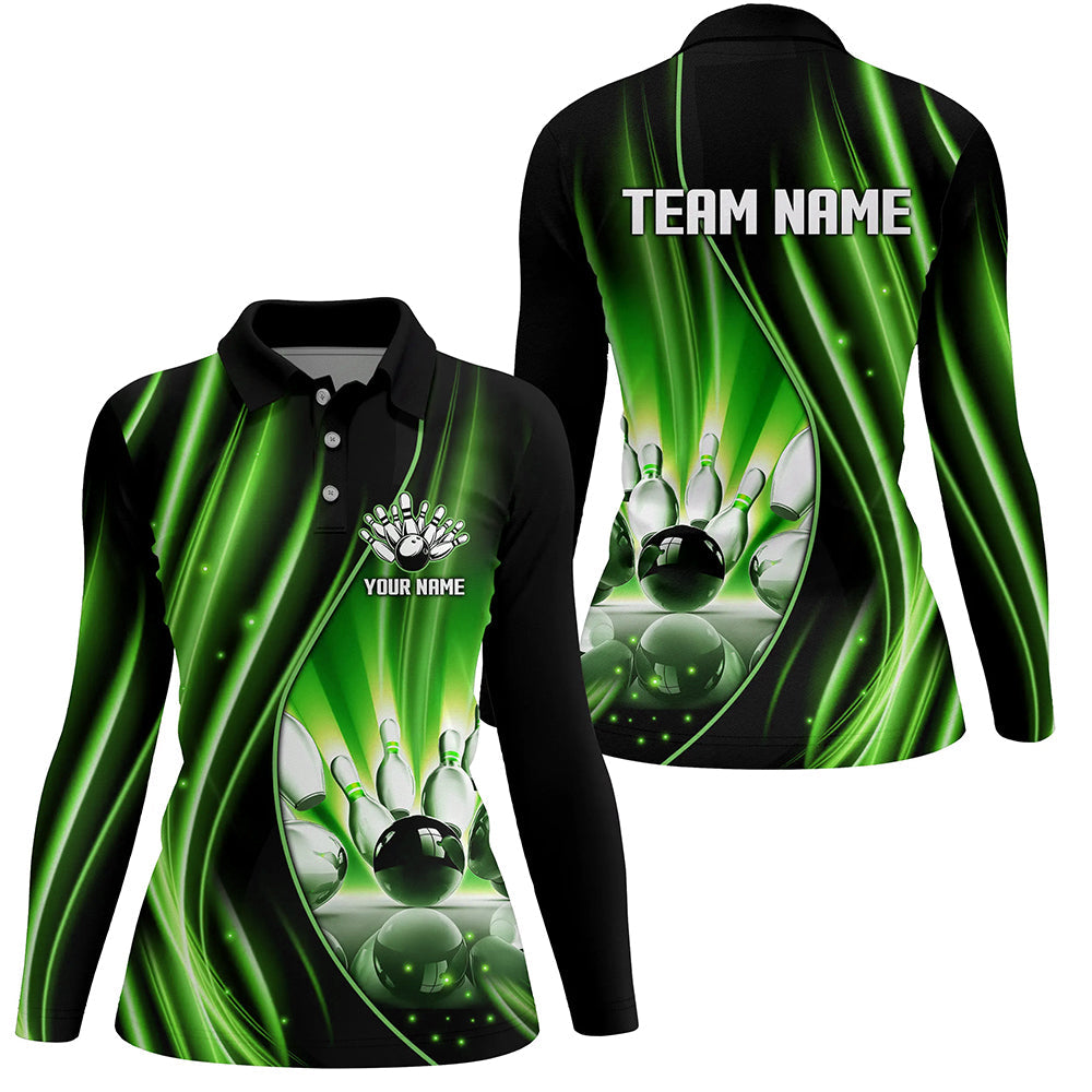Green and black light Women Polo, 1/4 Quarter Zip Shirts Custom bowling team jerseys, gift for bowlers NQS7859