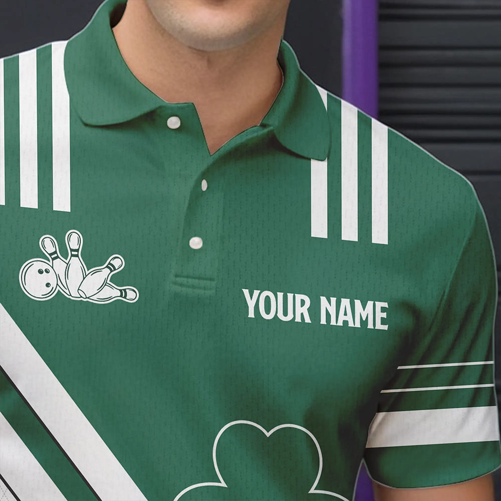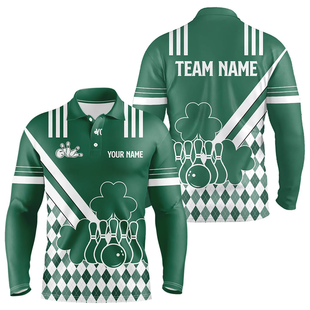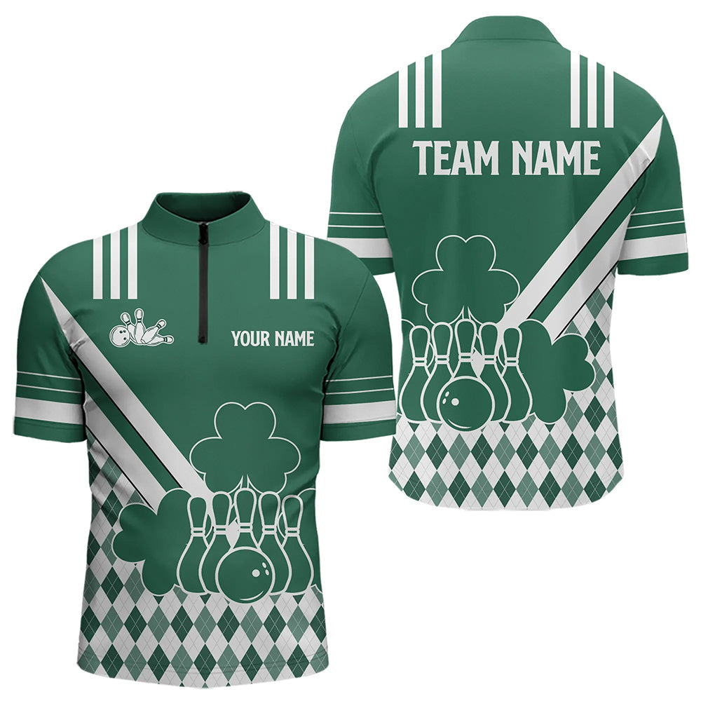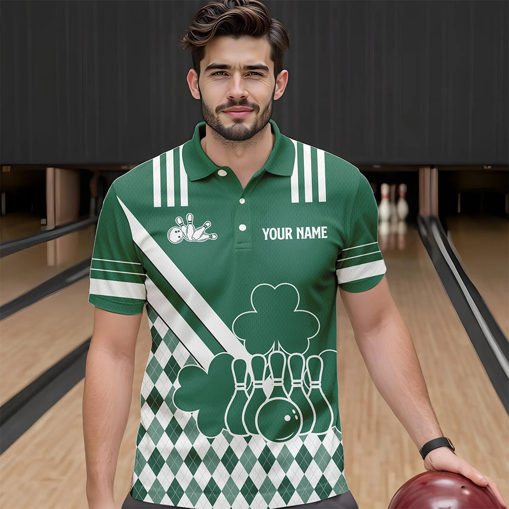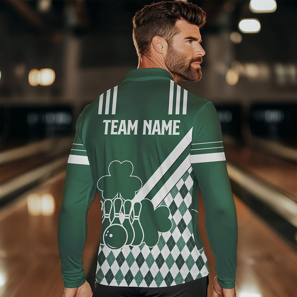 Green and White argyle pattern shamrock St Patrick's Day Men bowling shirts Custom Bowling Team Jersey NQS9383
