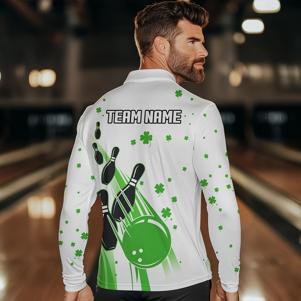 Green and White Shamrock Lucky Bowling Shirts For Men Custom St Patrick Day Team Bowling Jerseys NQS9499