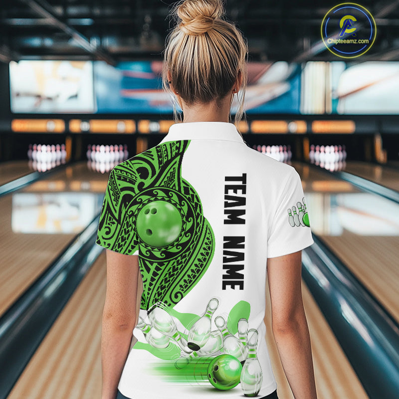 Green and White Tribal pattern Women Bowling Shirts Custom Bowling outfit ladies Team bowling jersey NQS9812