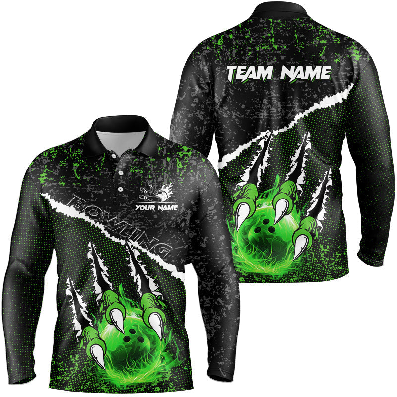 Green Flame Bowling Ball Black Camo Bowling shirts for Men custom Team bowling League jerseys NQS9004