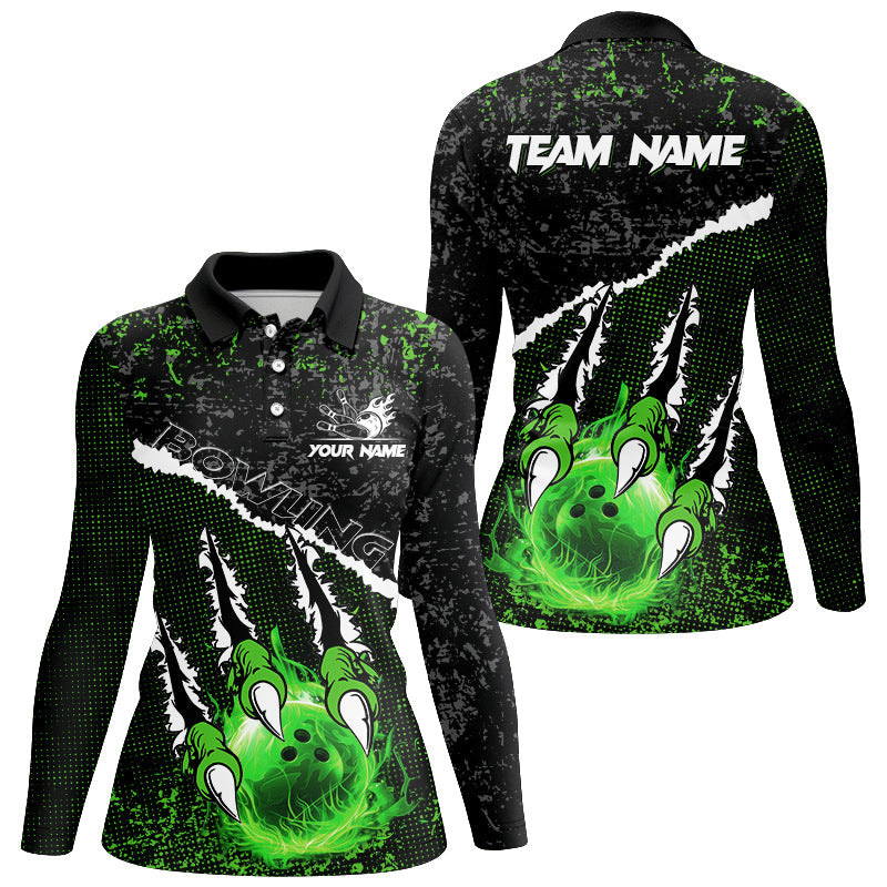 Green Flame Bowling Ball Black Camo Bowling shirts for Women custom Team bowling League jerseys NQS9004