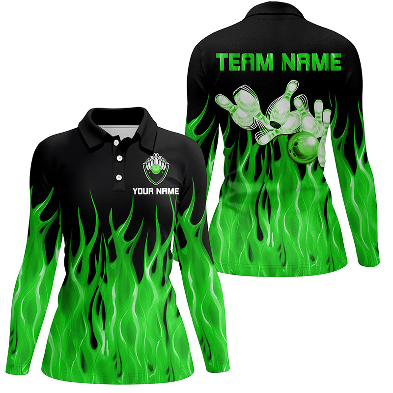 Green flame Womens bowling polo shirt black Bowling Jerseys Personalized Bowling Team Shirts NQS7303
