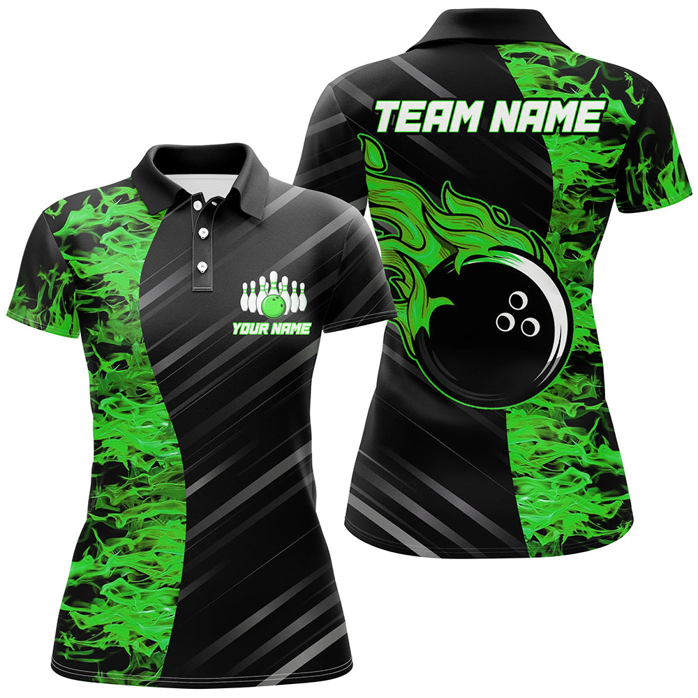 Green Flames Bowling Jersey Men Women Custom Bowling Polo Shirt For Team BDT487