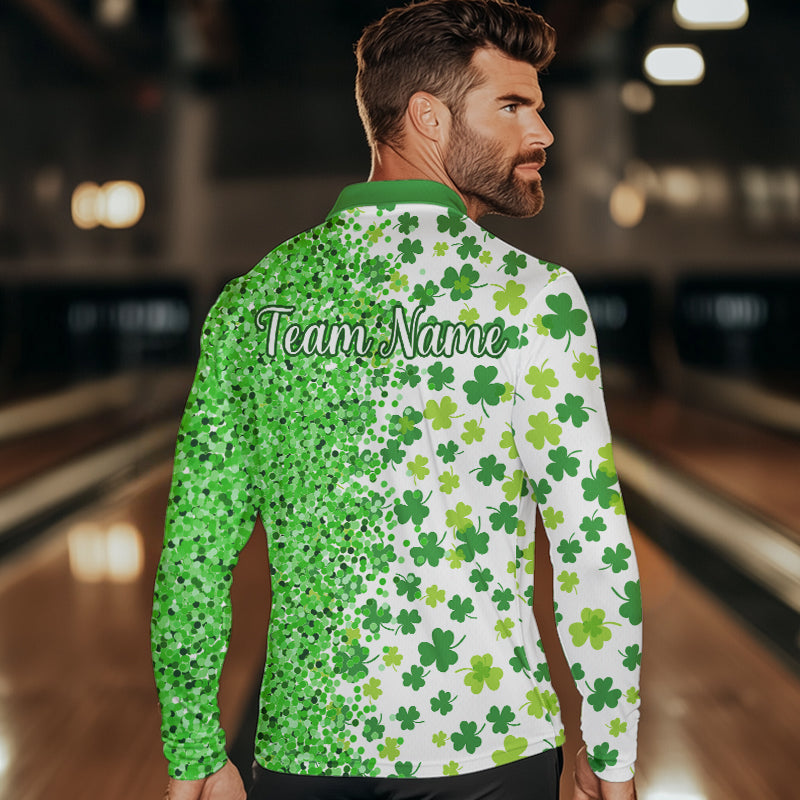 Green glitter shamrock clover Bowling shirts for Men custom St Patrick day Bowling Team Jerseys NQS9463