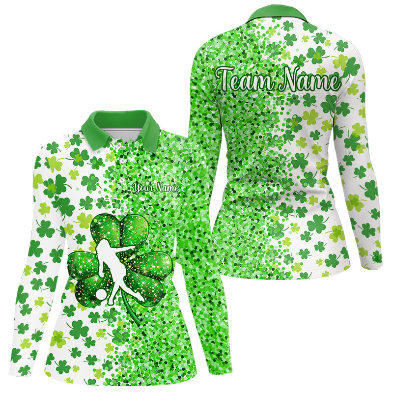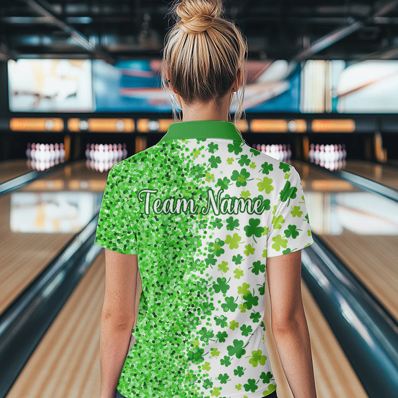 Green glitter shamrock clover Bowling shirts for Women custom St Patrick day Bowling Team Jerseys NQS9463