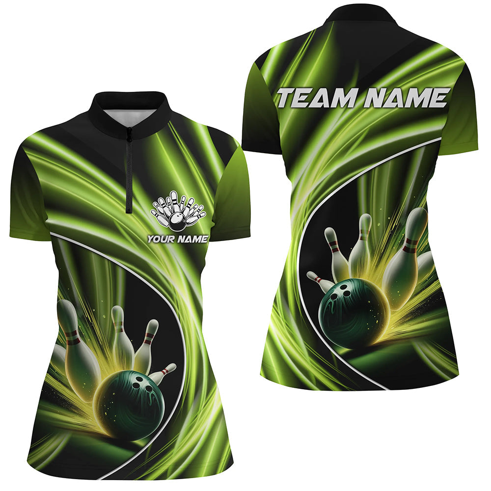 Green Light Bowling Jerseys For Women Custom Ladies Bowling Polo, Quarter-Zip Shirt for Team Bowlers NQS7603