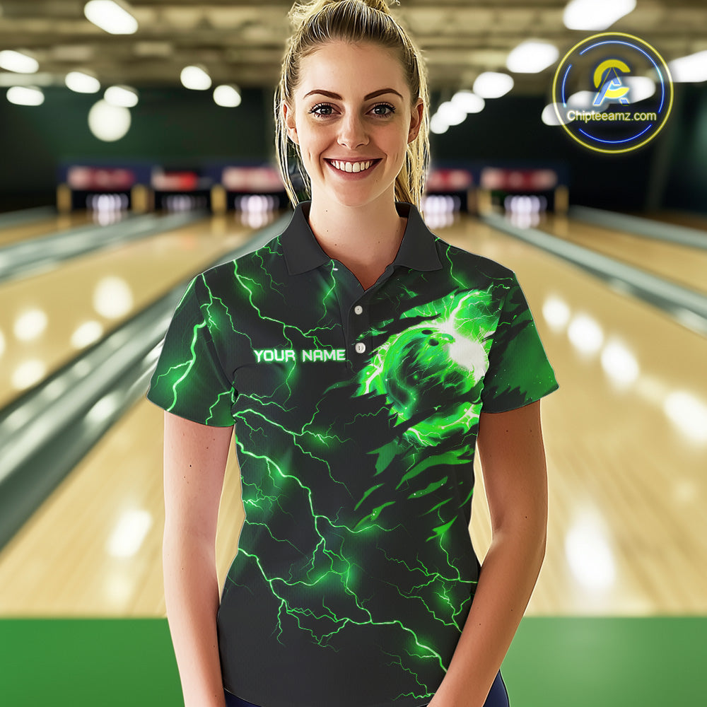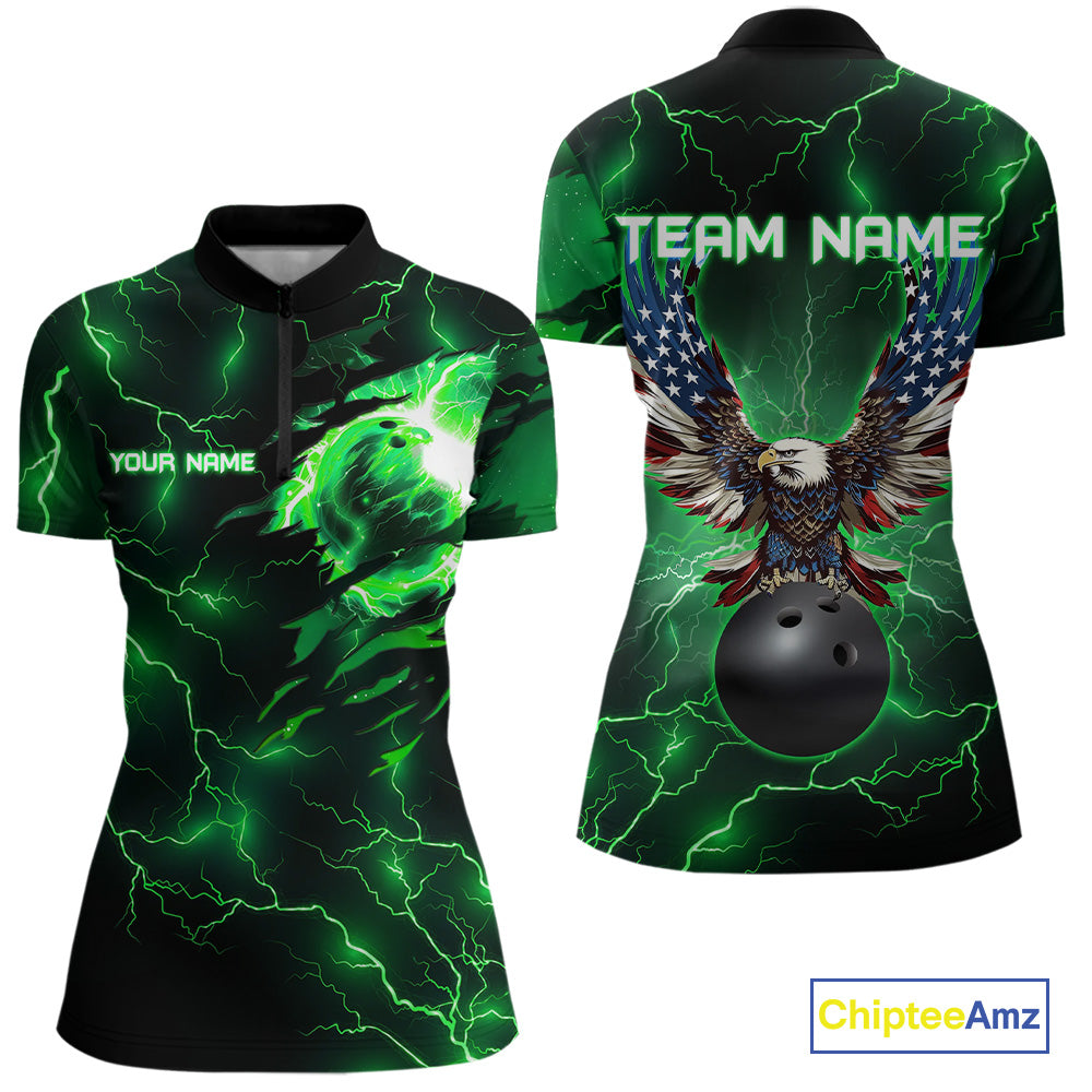 Green lightning thunder bowling American flag Eagle custom Women Bowling Polo, Quarter Zip Shirts NQS10111