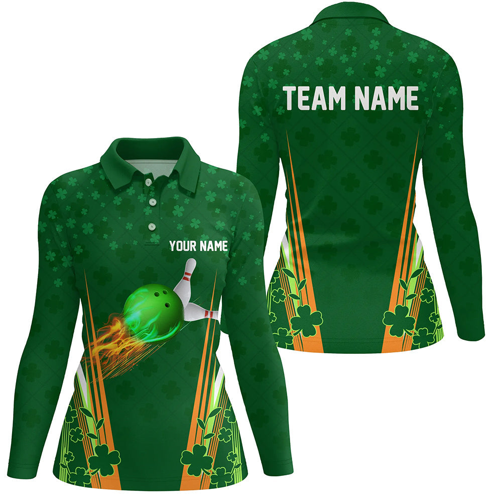 Green shamrock lucky Women bowling polo shirt Custom St Patrick Day team league bowling jerseys NQS7175
