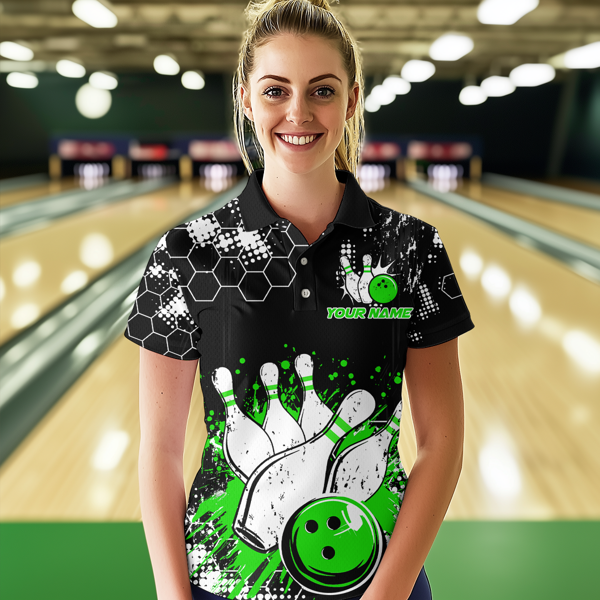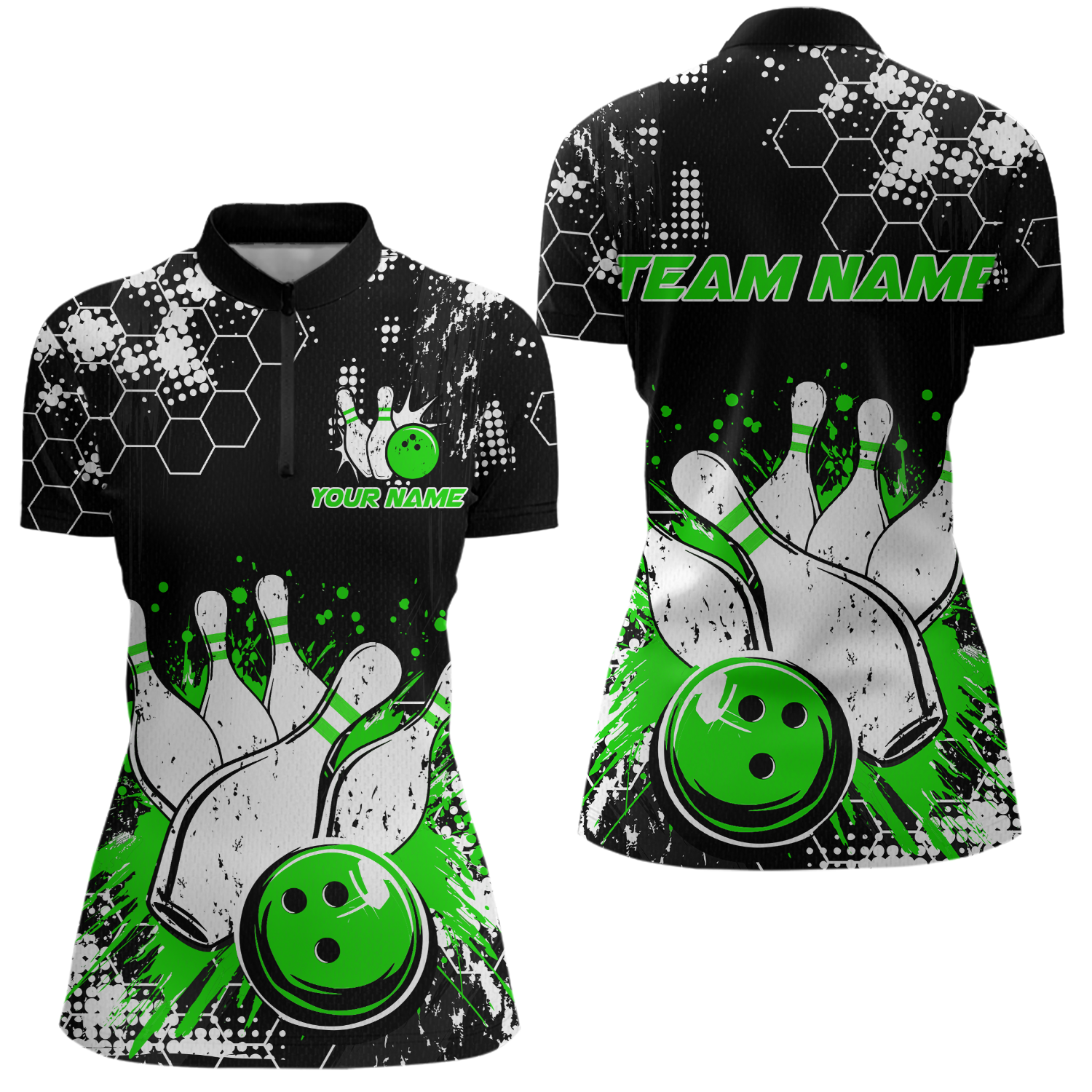 Green Watercolor Bowling Shirts Men Women Team Custom Bowling Polo & 1/4 Zip Shirt MBL60