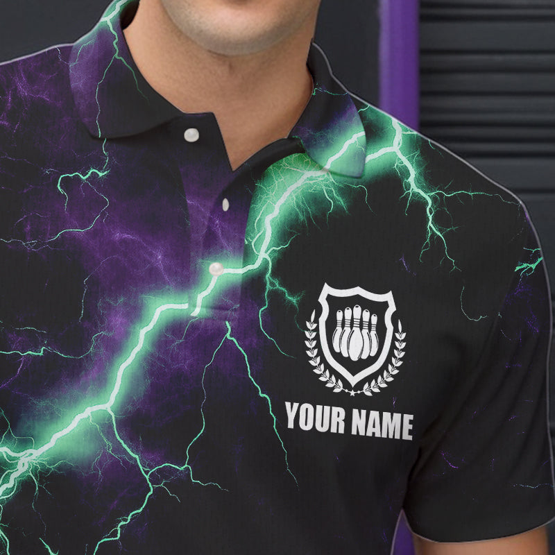 Men bowling shirts Custom Purple green lightning thunder Bowling Team Jersey, gift for team Bowlers NQS9601