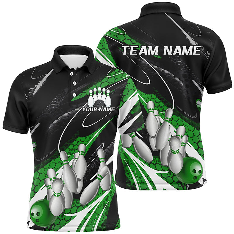 Black And Green Custom Bowling Shirts For Men, Bowling Tournament Bowling League Shirt For Team IPHW7701