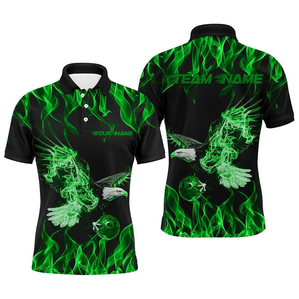 Green Flame Eagle Custom Bowling Team Shirts For Men, Fire Bowling League Shirt Bowler Outfit IPHW7947