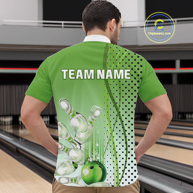 Mens bowling polo, quarter zip shirts Custom bowling team jerseys, gift for Bowlers | Green NQS10072