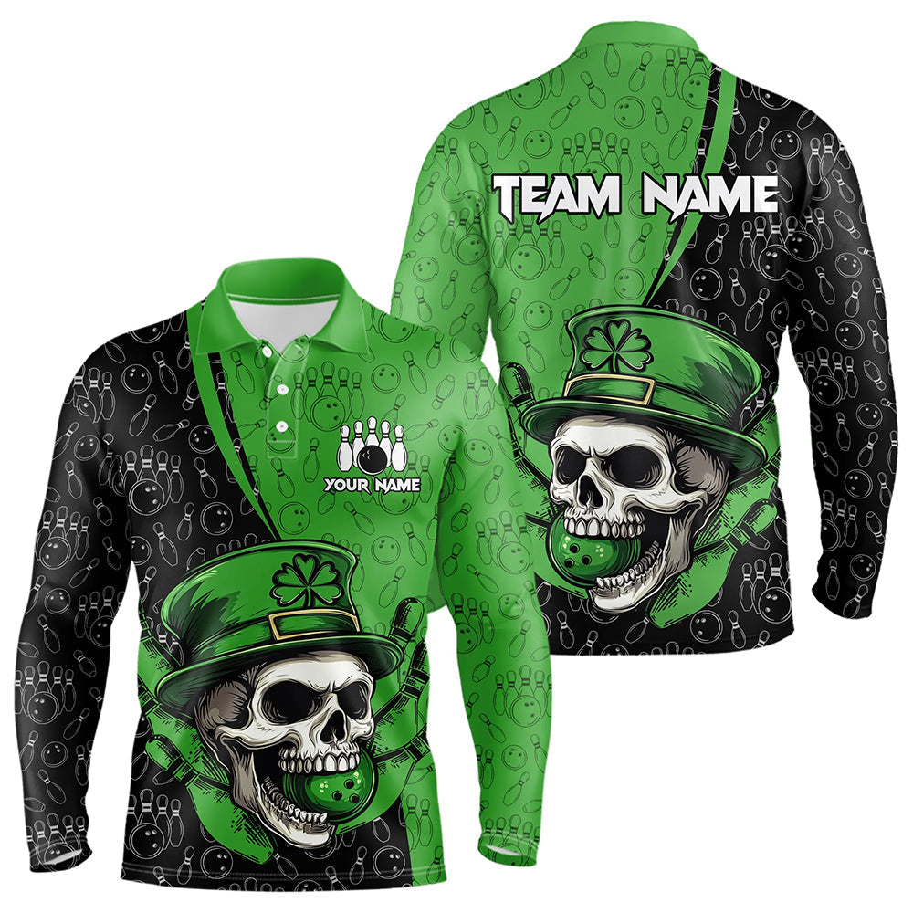 Personalized Black and Green Camo Skull Bowling Shirts For Men Custom St Patrick Team Bowling Jersey NQS9564