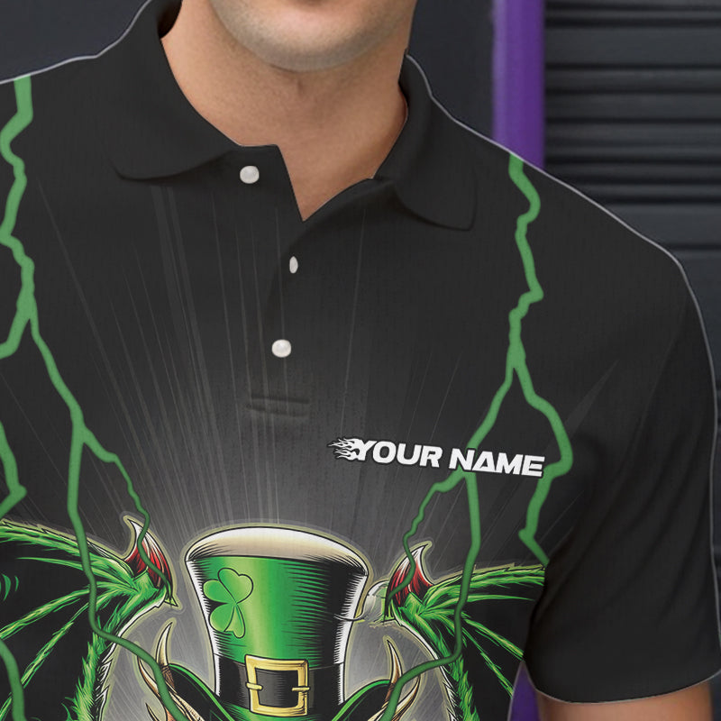 Custom Black And Green St Patricks Dragon Bowling Polo Shirts For Men, Lucky Dragon Bowling IPHW8609