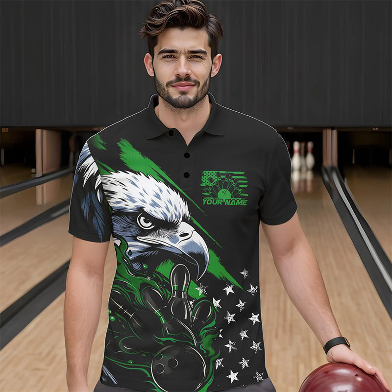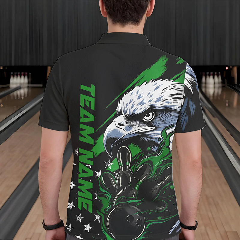 Black And Green American Flag Eagle Custom Patriotic Flame Bowling Team Men Polo Shirts IPHW8851